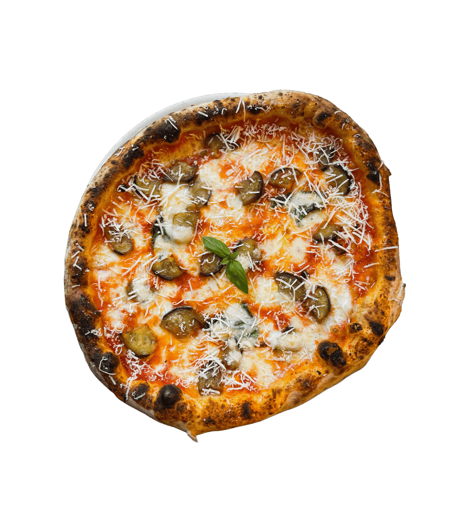 Tomate, mozzarella fior di latte, berenjenas fritas y ricotta salada (1, 7)